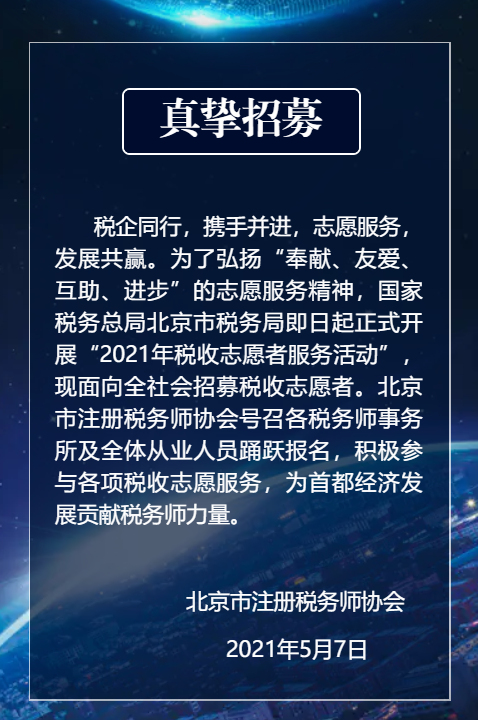 国家税务总局北京市税务局招募志愿者!