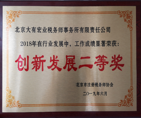大有宏业全体员工齐心协力、并肩奋进,2018年公司发展迈上新台阶。在北京市税务师协会2019年6月14日召开的三届十二次理事(扩大)会议上,大有宏业晋级为3A高等级事务所,同时获年度创新发展二等奖,荣登颁奖台!